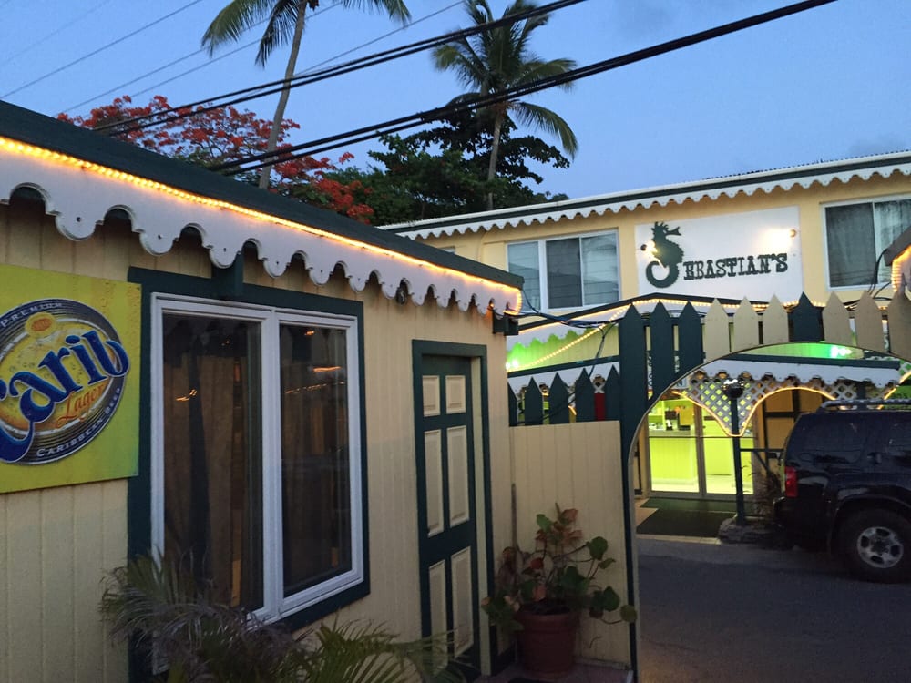 Sebastian’s Seaside Grill (North Coast Road, Apple Bay, Tortola) – located within a local hotel, this restaurant serves appetizers like West Indian Fritters, Spicy Chicken Wings, as well as dishes like Jamaican Jerk Chicken, Ginger Chicken, Garlic Shrimp, grilled steaks & lobsters, and Vegetarian Casseroles & Pastas.